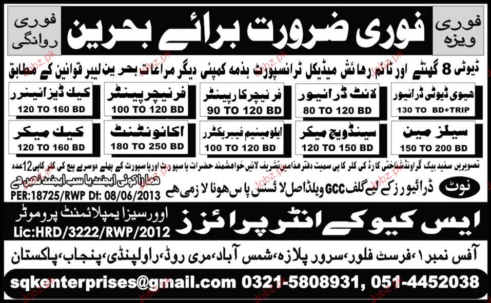 heavy Duty Drivers, Furniture Carpenters, Salesman Wanted