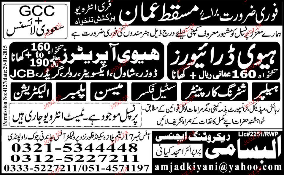Heavy Duty Drivers, Grader Operators and Shuttering Carpenters are required in O`