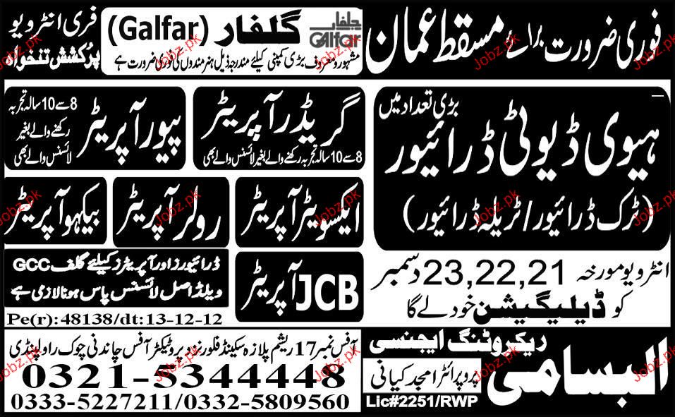 Heavy Duty Drivers, JCB Operators, Pavor Operaotrs and Bheck Operators are required in Oman