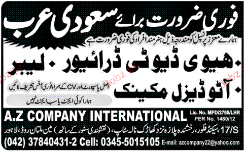 Heavy Duty Drivers, Labors And Auto Diesel Mechanic Wanted