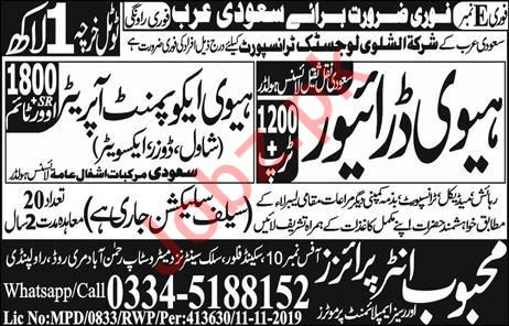 Latest Mehboob Enterprises Overseas Employment Promoters Driving Posts Saudi Arabia 2025