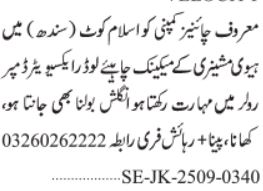 Heavy Machinery Mechanic Jobs Open In Karachi 2025