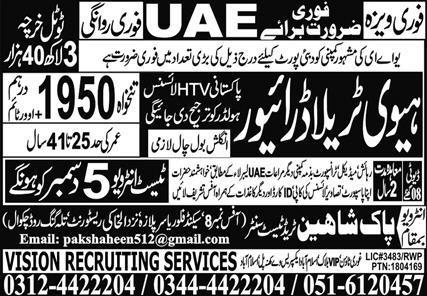 Pak Shaheen International Trade Test Center is looking for candidates for following posts as per job advertisement published in daily Express Newspaper of December 5, 2023 for location Sharjah, abu dhabi UAE: