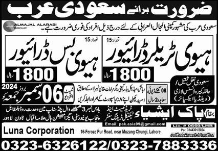 Luna Corporation is looking for candidates for following posts as per job advertisement published in daily Express Newspaper of December 4, 2024 for location Riyadh, riyadh Saudi Arabia: