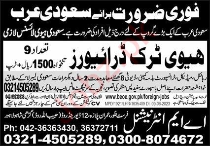 AM International Company Saudi Arabia, saudi arabia Saudi Arabia invites applications from eligible candidates for the post of heavy truck driver as per advertisement of June 11, 2023 published in daily Express Newspaper. Educational qualifications required Matric, Middle, Primary and Intermediate etc.