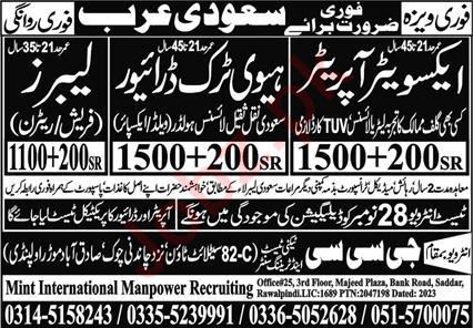 GCC Techni Test & Training Center Al Khobar, al khobar Saudi Arabia invites applications from eligible candidates for the post of heavy truck driver, labour and excavator opeator as per advertisement of November 26, 2023 published in daily Express Newspaper. Matric, Intermediate and Middle etc. educational qualification will be preferred.