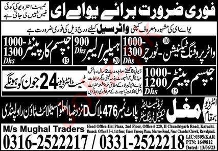 Vacant posts including gypsum painter, labor, gypsum carpenter, helper and technician are announced in Mughal Trade Test & Technical Training Center UAE, dubai UAE as per 18 June 2023 advertisement in daily Express Newspaper. Educational qualifications required Primary and Middle etc.