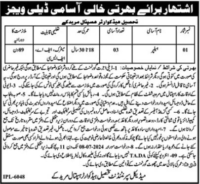 Latest Labor jobs and others Government jobs in Tehsil Headquarter Hospital THQ closing date is around July 8, 2024, see exact from ad. Read complete ad online to know how to apply on latest Tehsil Headquarter Hospital THQ job opportunities.