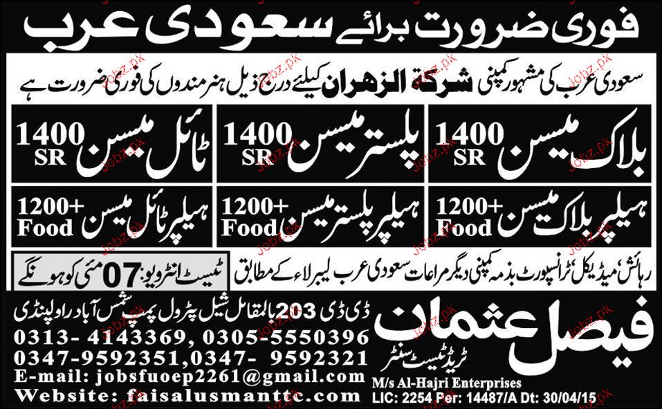 Apply as per details in job advertisement. Login to view further details of how to apply via https://www.jobz.pk online.