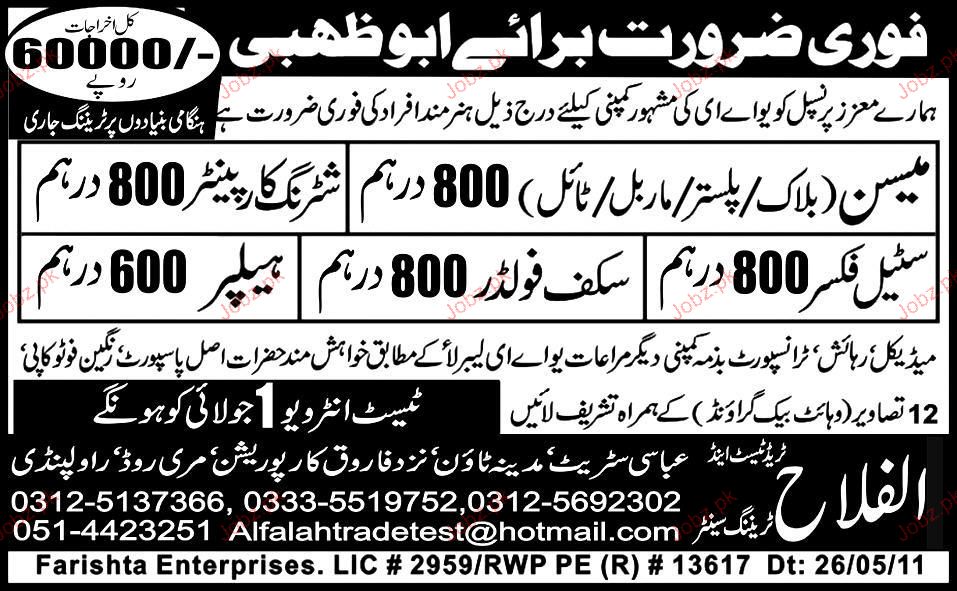 Helper, Mason, Shuttering Carpenter Job Opportunity