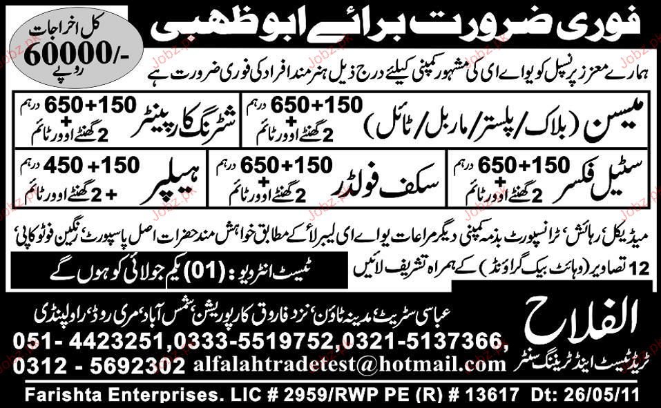 Helper, Mason, Shuttering Carpenter Job Opportunity