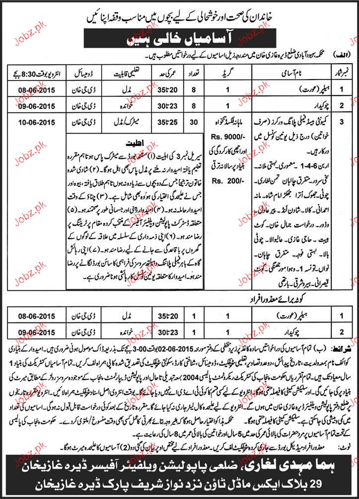 Helpers And Chawkidars Job In Population Department