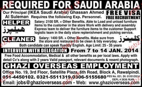 Helpers And Cleaners Job Opportunity