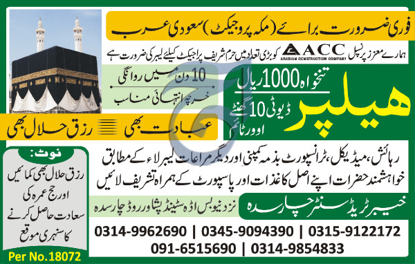 Helpers Job in Mecca Project in Saudi Arabia