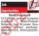 Helpers Jobs 2019 For Hospital In Lahore