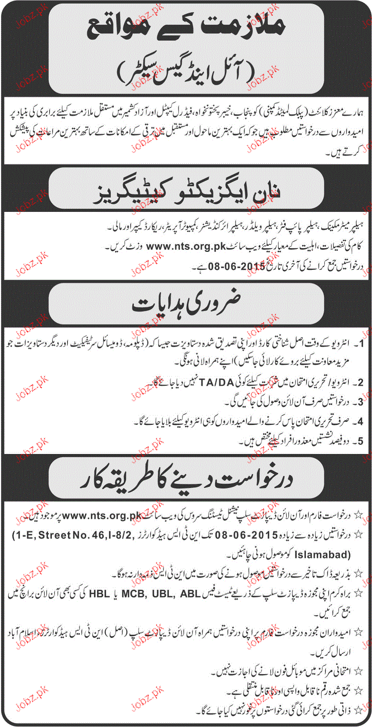 Apply as per details in job advertisement. Login to view further details of how to apply via https://www.jobz.pk online.