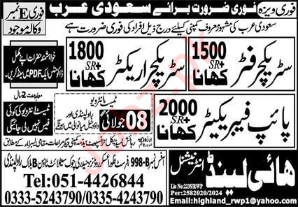 High Land International is looking for candidates for following posts as per job advertisement published in daily Express Newspaper of July 8, 2024 for location Riyadh, riyadh Saudi Arabia: