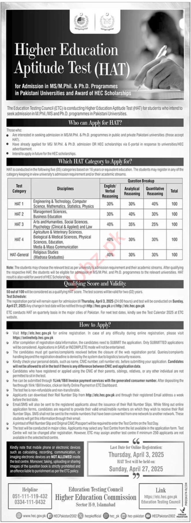 Vacancies in Higher Education Commission HEC Advertisement March 2025