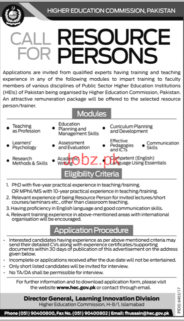 Latest Higher Education Commission HEC Teaching Posts Islamabad 2025