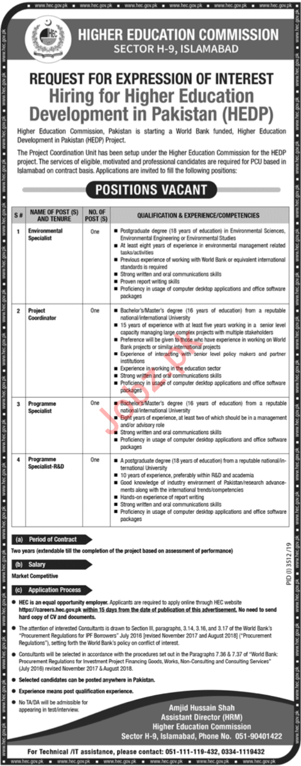 Higher Education Commission HEC Management Jobs 2020