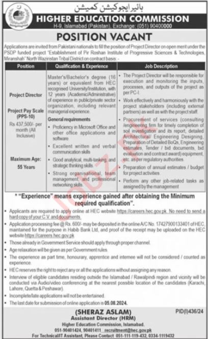 Vacancies in Higher Education Commission HEC Advertisement July 2024