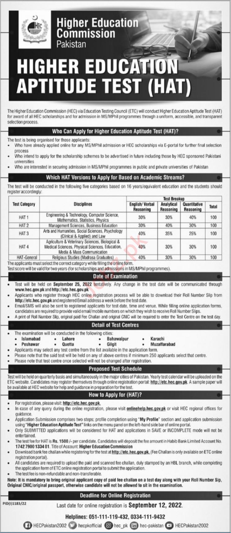 Higher Education Commission HEC Test 2022