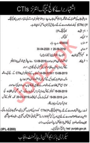 Latest Higher Education Department Teaching Posts Lahore 2025