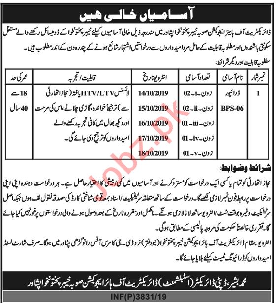 Latest Higher Education Department Driving Posts Peshawar 2025