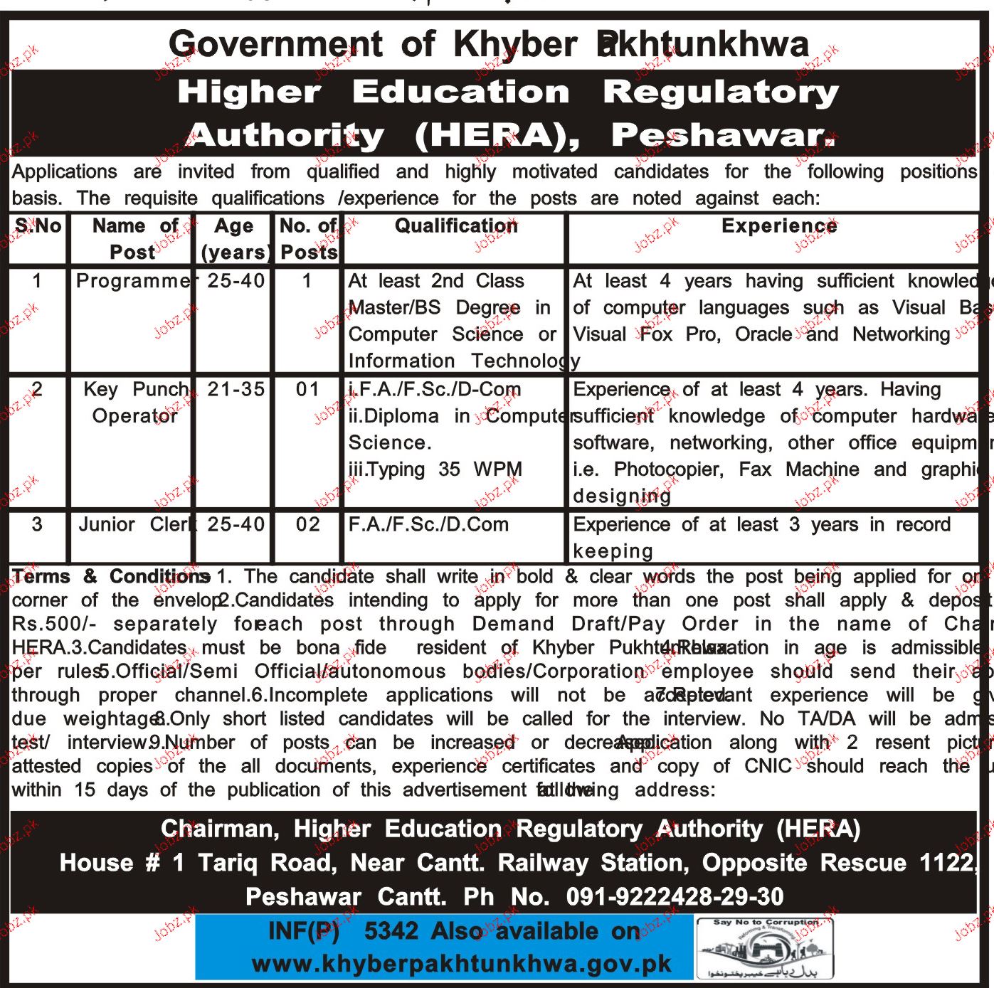Apply as per details in job advertisement. Login to view further details of how to apply via https://www.jobz.pk online.
