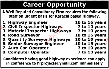 Highway Engineer, Road Surveyor And Computer Operator Jobs