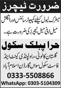 Hira Public School is looking for candidates for following posts as per job advertisement published in daily Express Newspaper of March 27, 2022 for location Islamabad, islamabad Islamabad Pakistan:
