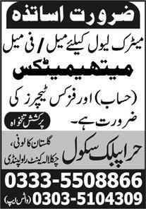 Hira Public School invites applications for job positions advertised in daily Express dated 17 April 2025 for following vacancies in Chaklala Rawalpindi, rawalpindi Punjab Pakistan.