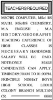 Latest Classifieds jobs in Nishat Boys High School in Education and others can be applied till 29 February 2024 or as per closing date in newspaper ad. Read complete ad online to know how to apply on latest Nishat Boys High School job opportunities. Learn today extra skills including Chemistry Tutoring, Computer Science Tutoring, English Teaching and Teaching/Lecturing to get these Nishat Boys High School jobs.