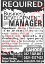 Vacant posts including business development manager are announced in Hitech Networks Pvt Limited Lahore, lahore Punjab Pakistan as per 13 November 2022 advertisement in daily Jang Newspaper. Candidates with Intermediate and Bachelor etc. educational background will be preferred.