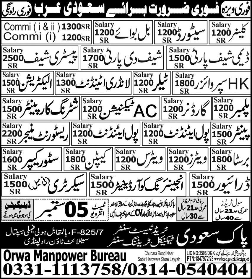 Pak Saudi Trade Test & Technical Training Center is looking for candidates for following posts as per job advertisement published in daily Express Newspaper of September 1, 2023 for location Riyadh, makkah Saudi Arabia: