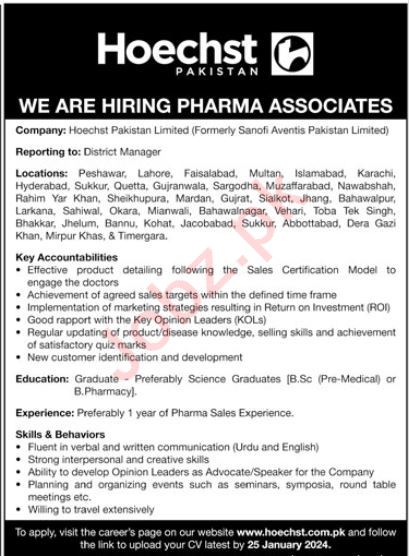 Vacancies in Hoechst Pakistan Advertisement January 2024