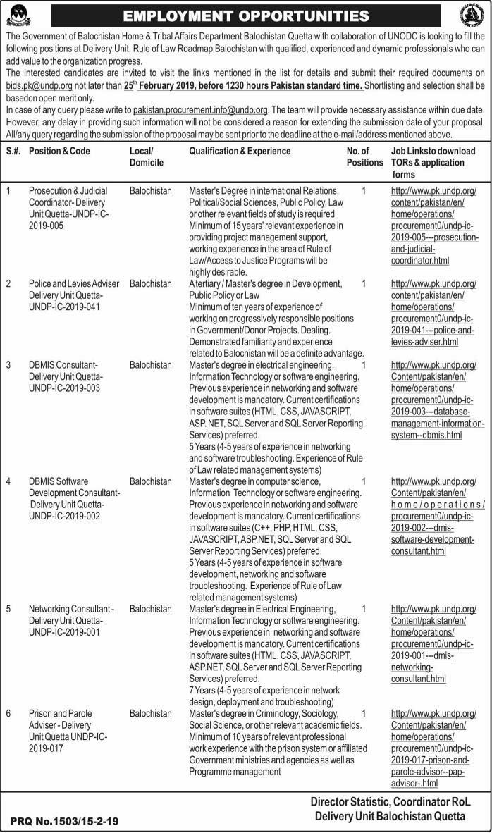 Vacancies in Home & Tribal Affairs Department Advertisement February 2019