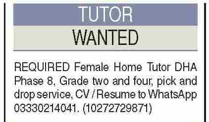 Academy jobs advertisement dated about 13 June 2024 in daily Dawn Newspaper invites application for the vacant post of female home tutor, tutor, home tutor and teacher in Karachi, karachi Sindh Pakistan. Bachelor and Master etc. educational qualification will be preferred.