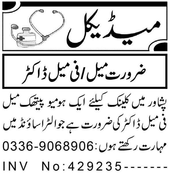 Vacant posts including homeopathic doctor are announced in Clinic Peshawar, peshawar Khyber Pakhtunkhwa KPK Pakistan as per 27 February 2024 advertisement in daily Aaj Newspaper. Master and Bachelor etc. educational qualification will be preferred.