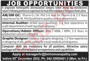 Latest Homeopathic Pharma Company Management Posts Lahore 2025