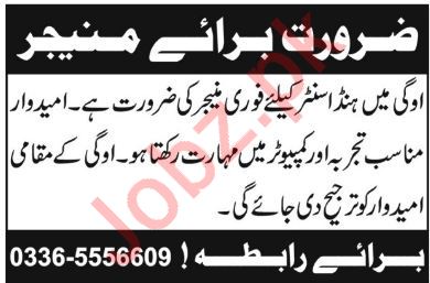 Apply as per details in job advertisement. Login to view further details of how to apply via https://www.jobz.pk online.
