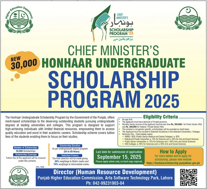 Admissions in National Youth Empowerment Scholarship Program 2025 for Honhaar Scholarship has been announced. Students can enroll for admissions in National Youth Empowerment Scholarship Program Lahore Punjab Pakistan for academic year 2025 to continue campus based or online education in Science College. Students for admissions in & criteria can apply as per Government institute admission policy 2025 before closing date as per advertisement. Read newspaper ad for exact details.