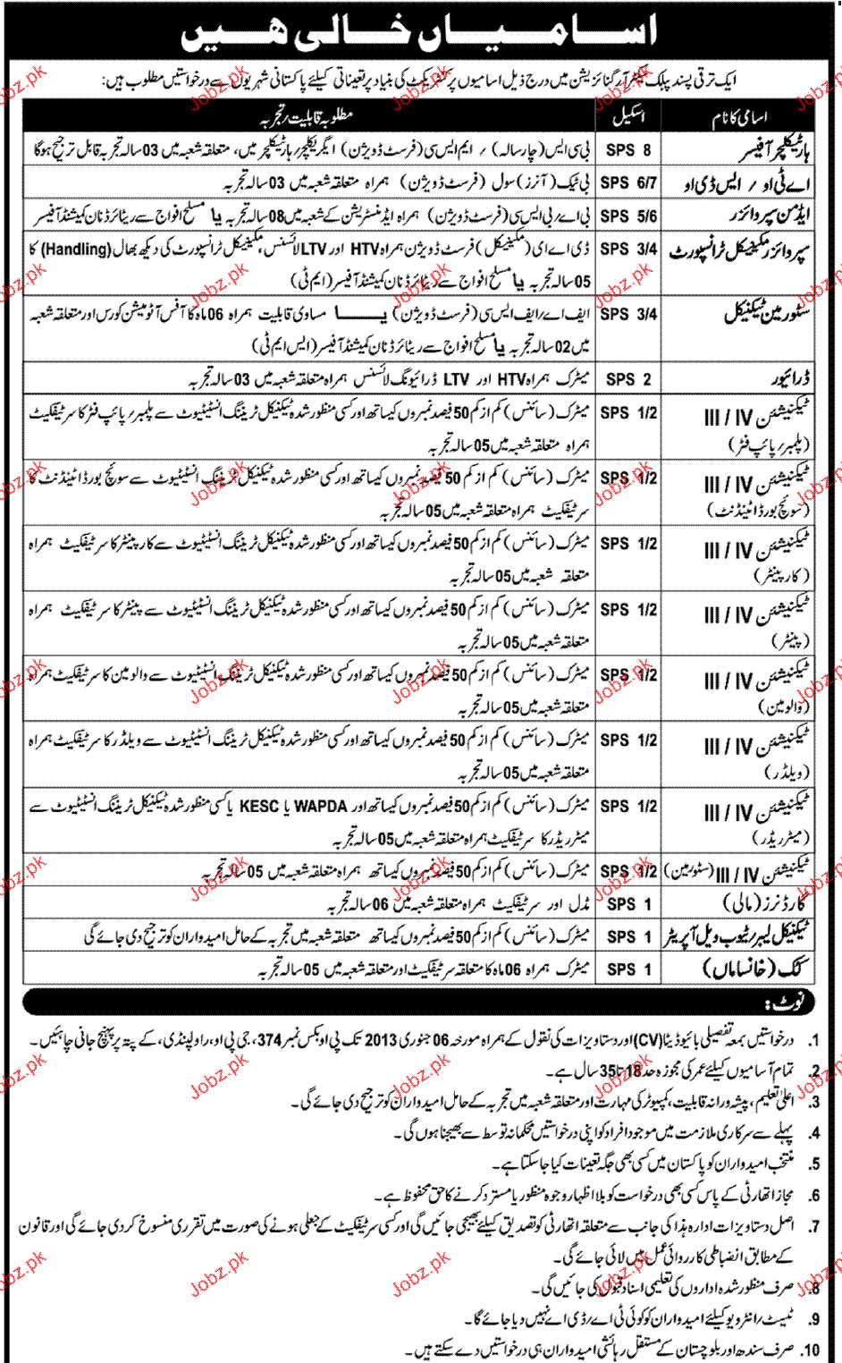 Apply as per details in job advertisement. Login to view further details of how to apply via https://www.jobz.pk online.