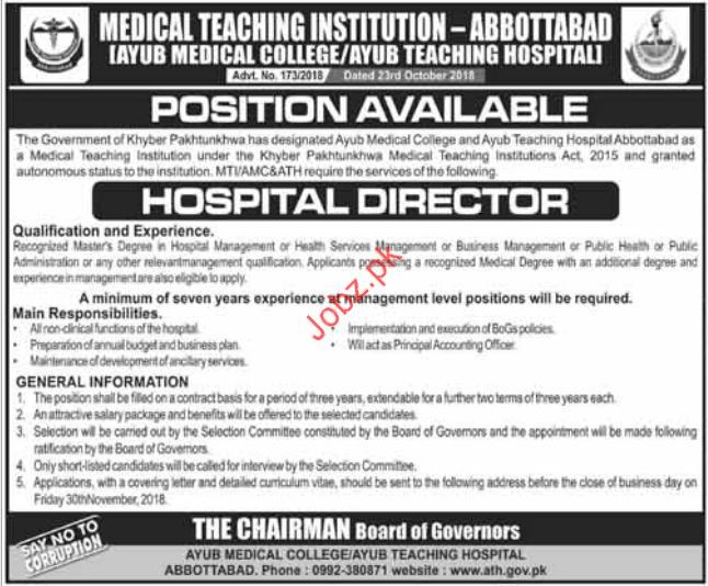 Hospital Director Jobs in Ayub Teaching Hospital