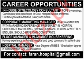 Hospital Manager & In House Gynecology Consultant Jobs 2020