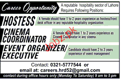 Hostess, Cinema Coordinators Job Opportunity