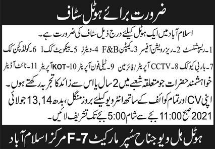 Hotel and Restaurant Staff Jobs 2021 in Islamabad