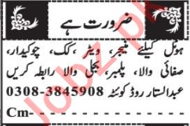 Hotel Jobs In Quetta