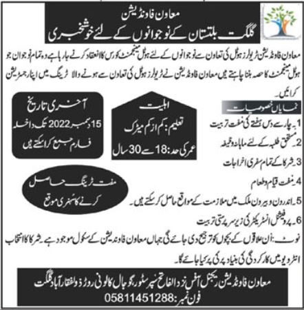 Moawin Foundation Hotel Management Course admissions 2022 has been started. Students can enroll for admissions in Moawin Foundation Gilgit Gilgit Baltistan Pakistan for academic year 2022 to continue campus based or online education in Management Course. Students for admissions in Course & criteria can apply as per Private institute admission policy 2022 before closing date December 15, 2022 as per advertisement. Read newspaper ad for exact details.