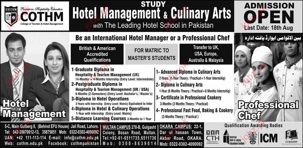 Graduate Diploma in Hospitality 4 Toursim Management UK, Advanced Diploma in Culinary Arts, Postgraduate Diploma in Hospitality & Toursim Management UK/USA in Hotel Management & Culinary Arts with the Leading Hotel School in Pakistan Read newspaper ad for exact details.